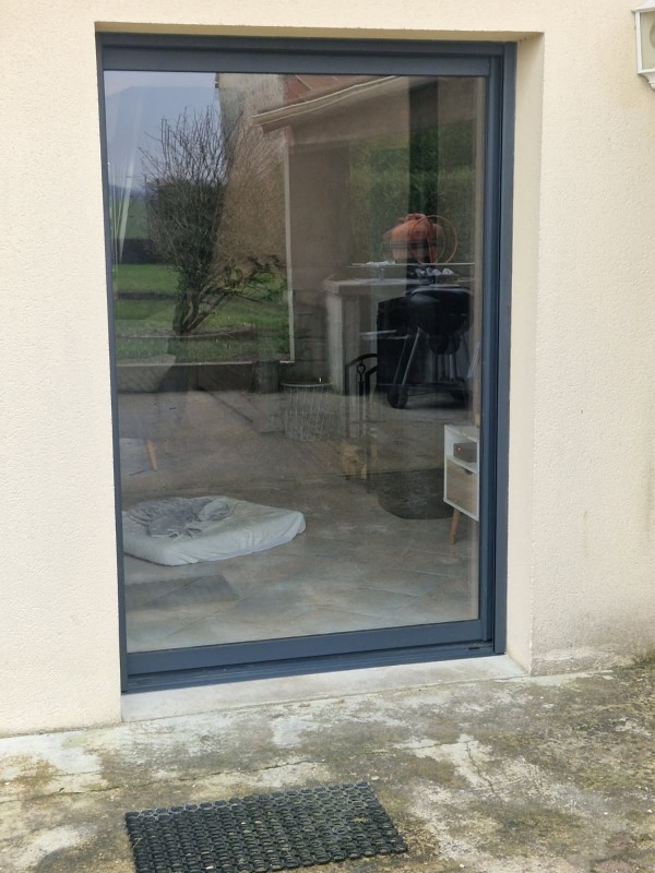 Le résultat est une belle esthétique extérieure donnant un style plus moderne à l'habitation ancienne. Sur nos conseils, les clients ont remplacé une porte-fenêtre classique par un coulissant à galandage dans le séjour, apportant une très grande luminosité dans la pièce ainsi qu'un gain de place conséquent. Les volets roulants sont de la même couleur que les menuiseries pour uniformiser l'ensemble.