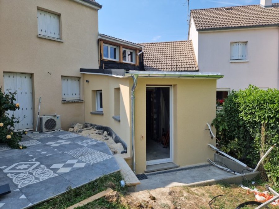 Les clients bénéficient d'une extension maçonnée totalement isolée et conçue par rapport aux contraintes techniques du terrain. L'étude préalable a permis de prévoir la toiture en bacacier afin de d'évacuer facilement les eaux de pluie. L’objectif était d'agrandir l’habitation pour créer une buanderie et un espace de travail confortable.